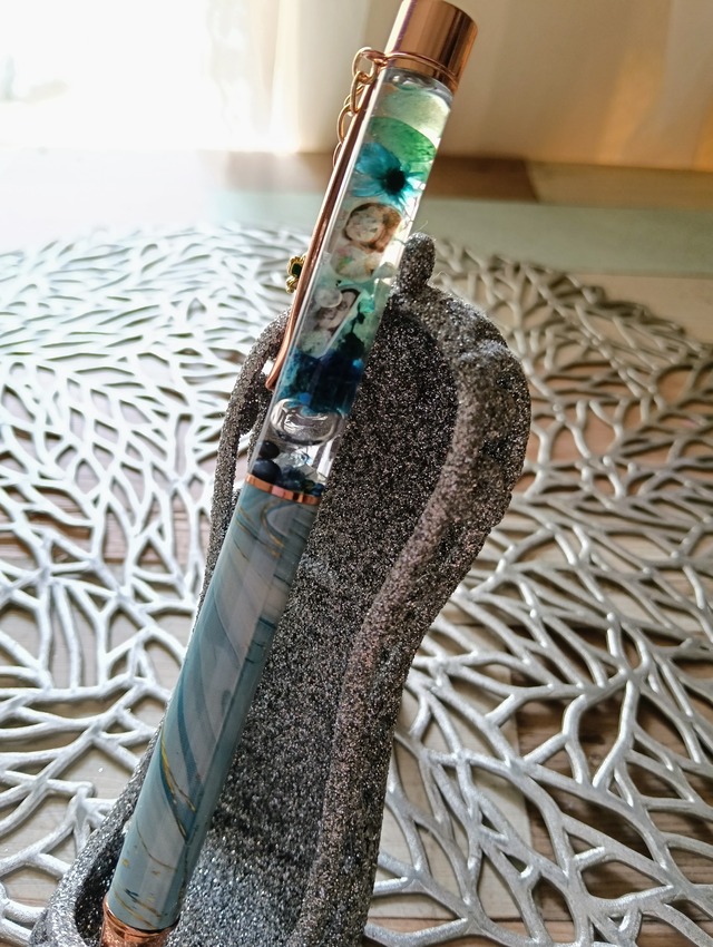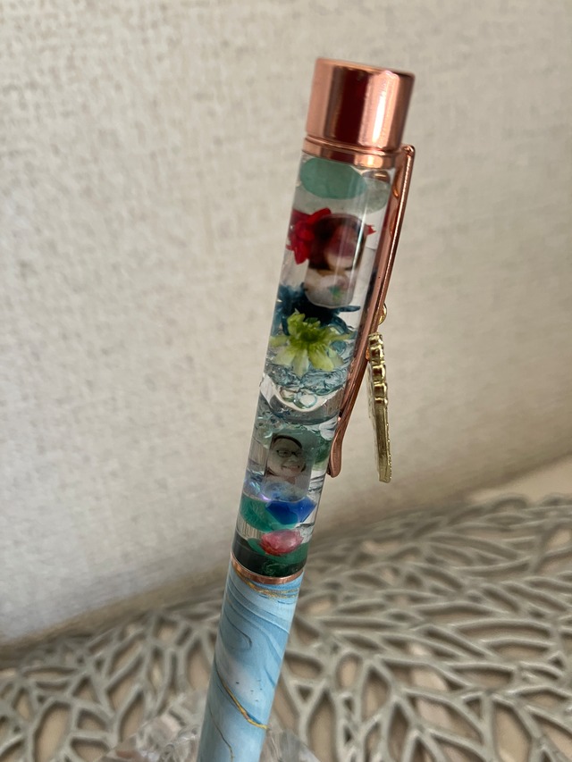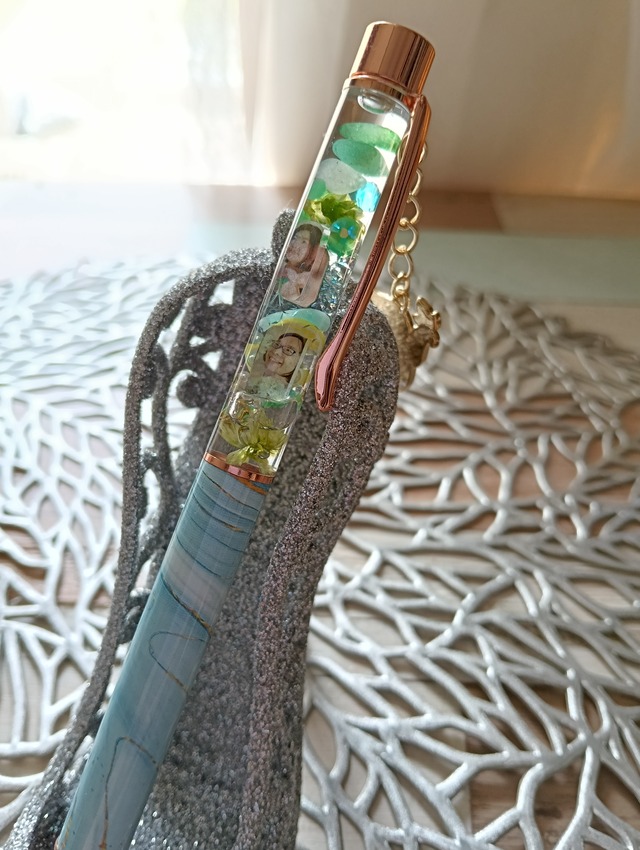 Uracy公式、コラボボールペンシリーズです。 写真と同じデザイン、同じオマージュとなります。 Uracyをオンラインでも楽しんで頂くために、先行販売をしています。 ご注文のタイミングによっては、リアルイベント当日に間に合わない事もございます。 送料込みです。 別々に頂いた注文を一括発送する場合、送料の返金は行いません。 ご了承ください。 替え芯オプションは在庫がなくなった場合、5日ほど納期をいただきます。 商品説明 <ボディ> ブルーマーブルです。 <チャーム> パーソナリティに合わせたチャームをあしらっています。 <パワーストーン> ボールペンボディの上部にパワーストーンがいらっしゃいます。 アベンチュリン:癒やし、対人関係、ネガティブな感情の解消