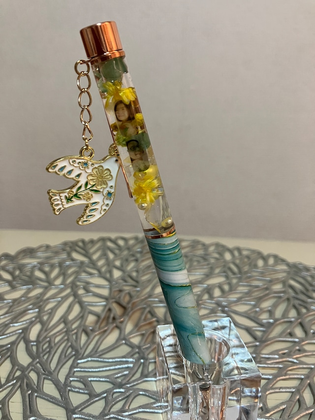 02さわなおさんモデル ミモザ ボディ:エメラルド チャーム:白ハト Uracy Springボールペン