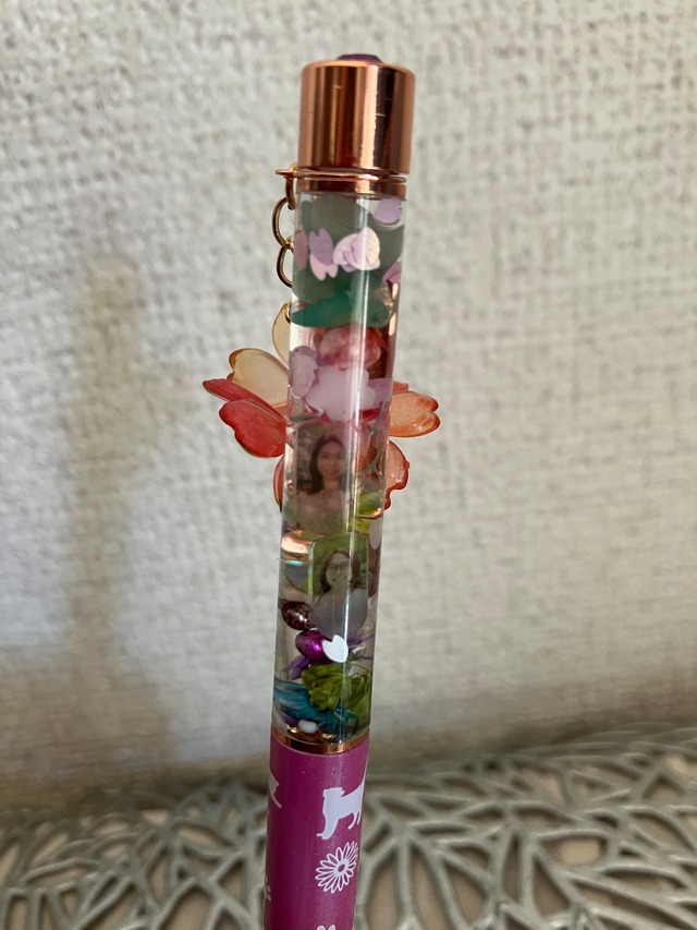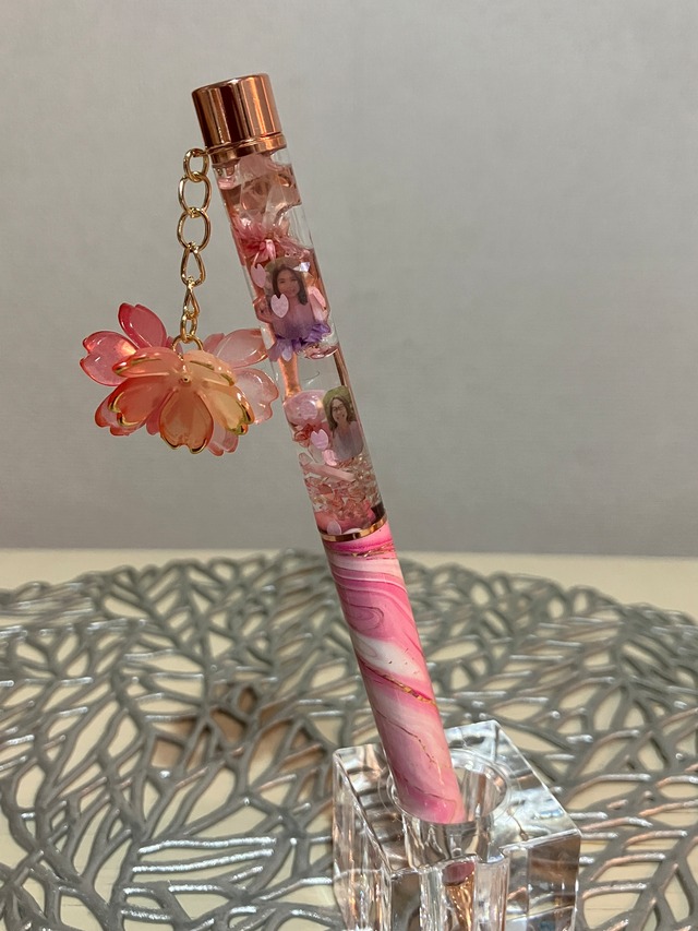 07藤本スバルさんモデル 春花束 ボディ:ピンクマーブル チャーム:メイクパレット Uracy Springボールペン