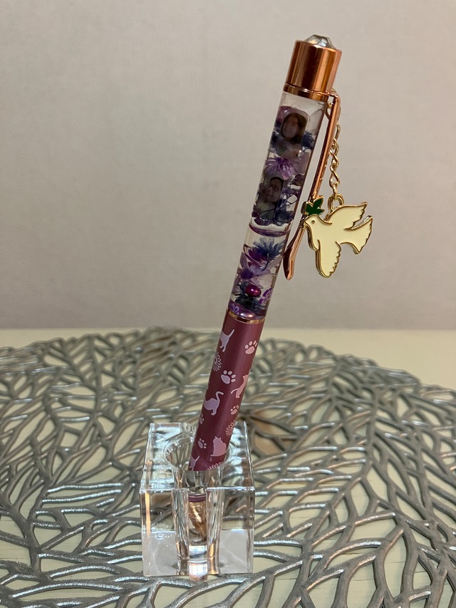 さわなおさんモデル ミモザ ボディパープル猫 チャーム白鳩 Uracy Springボールペン
