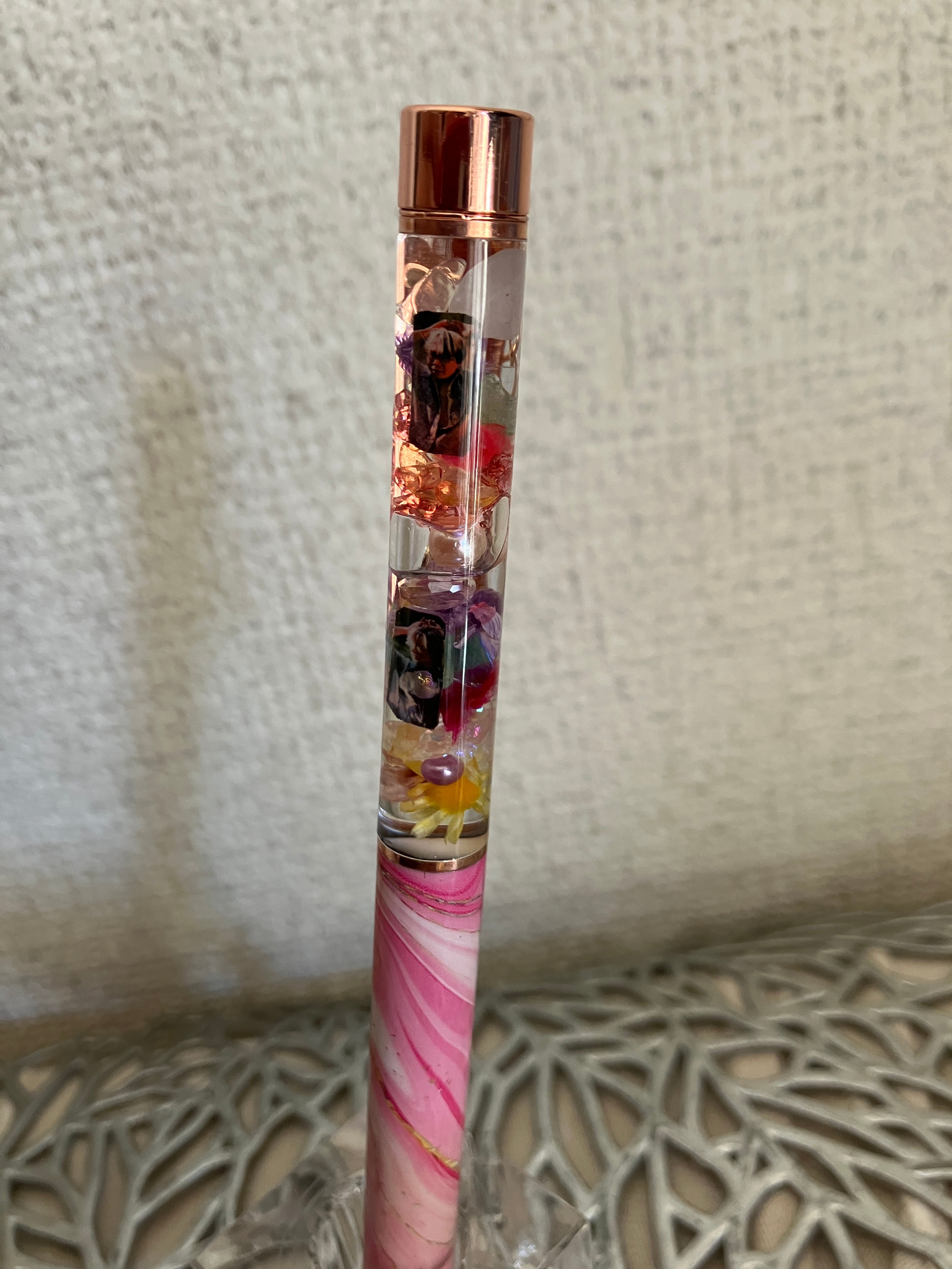 ボールペンボディの上部にパワーストーンがいらっしゃいます。
