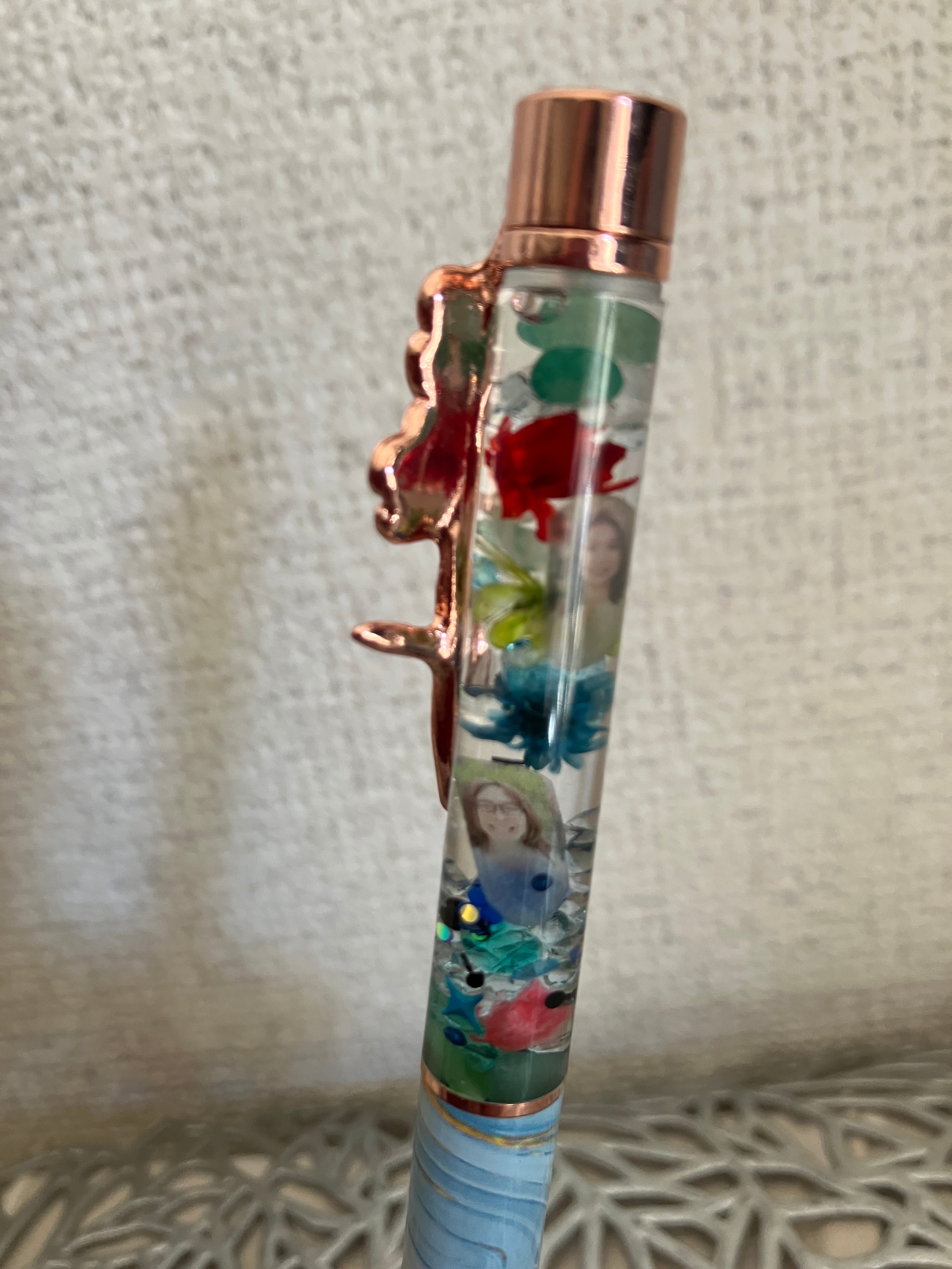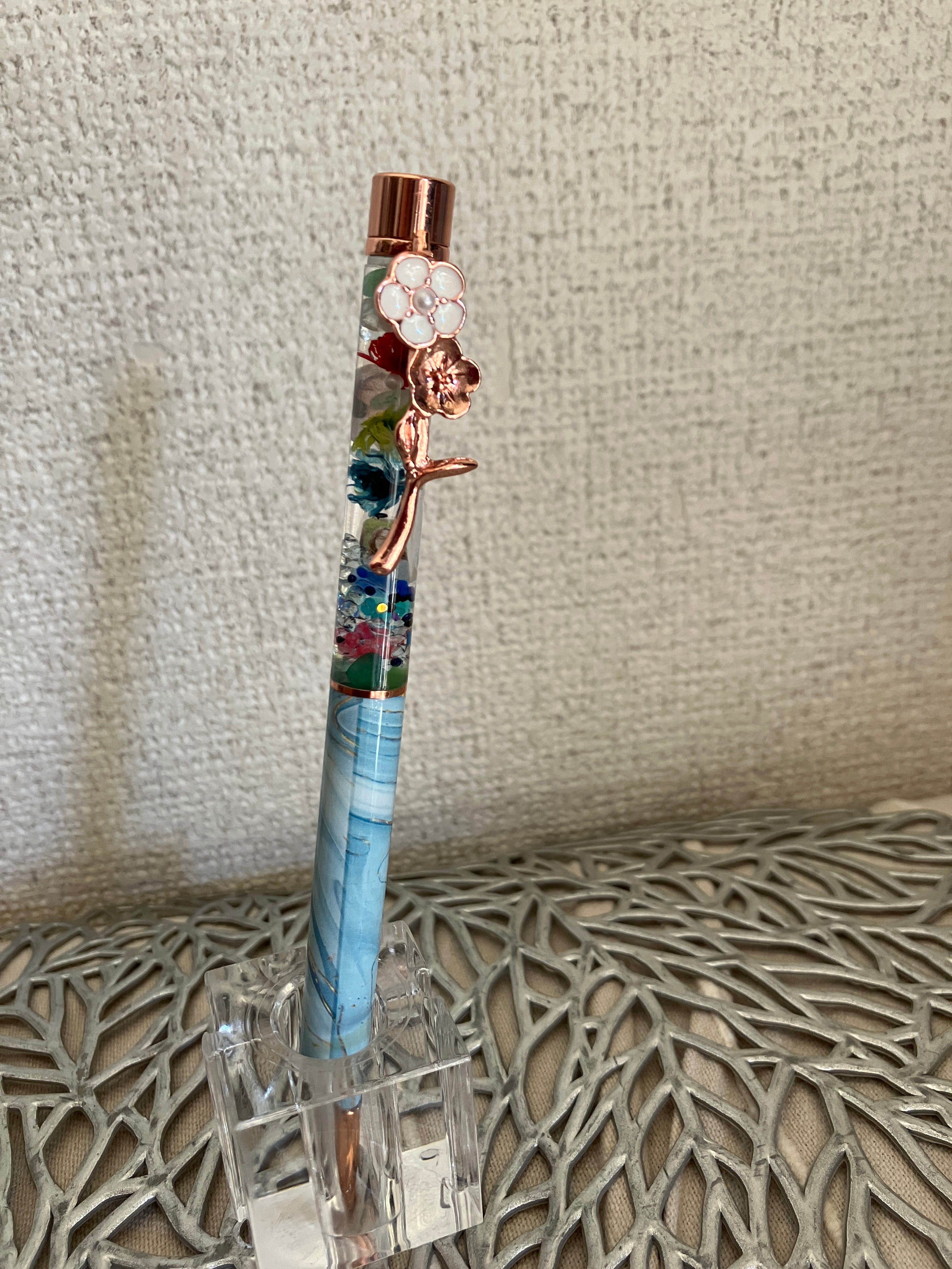 11稲垣沙織さんモデル スイレン ボディ:ブルーマーブル チャーム:花クリップ Uracy Springボールペン