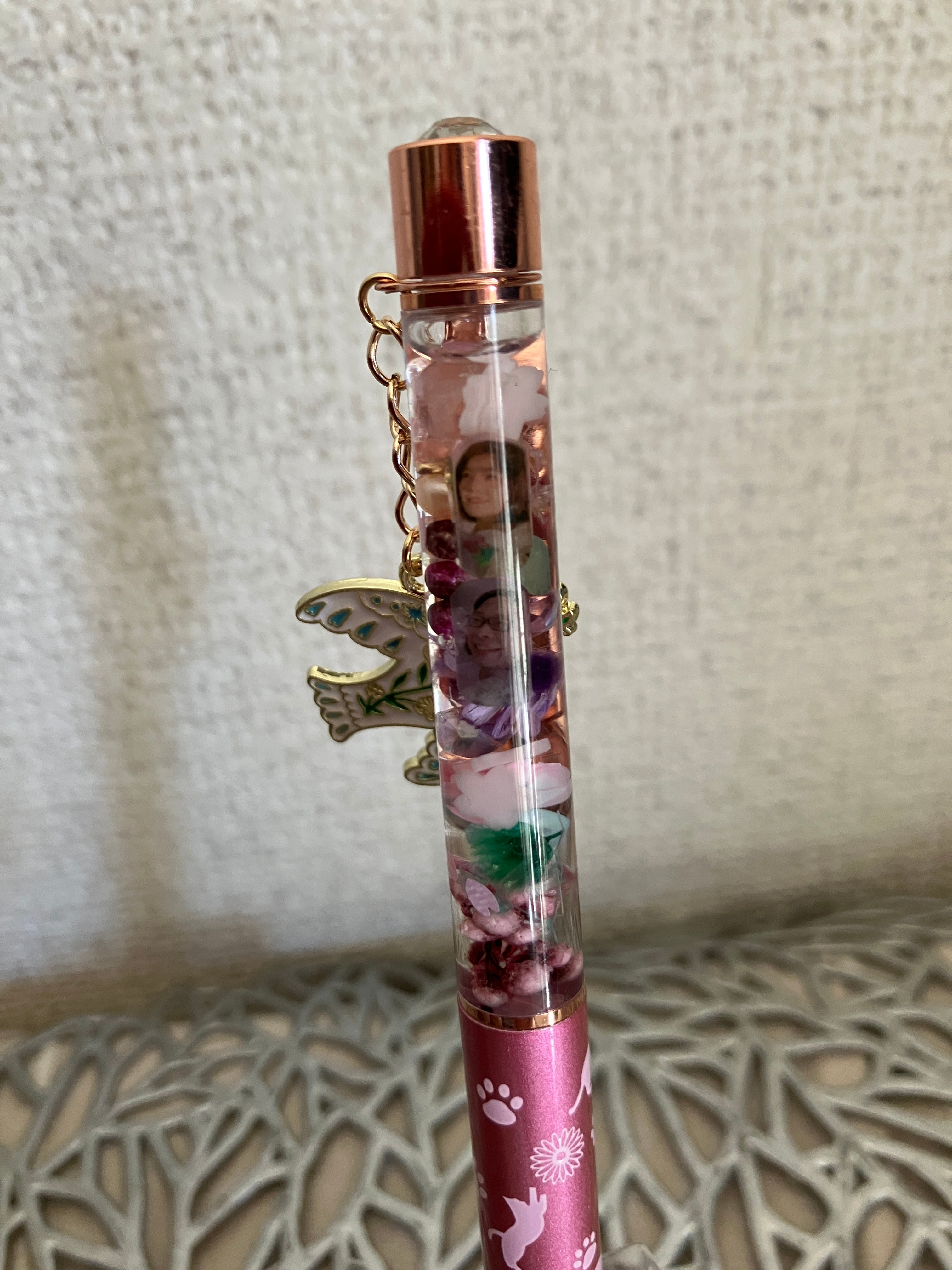 ボールペンボディの上部にパワーストーンがいらっしゃいます。